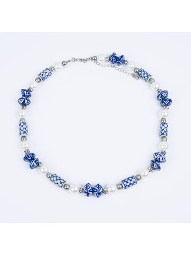 Ketting Jonkvrouw - Parel - Keramiek - zilver - 45-52 cm