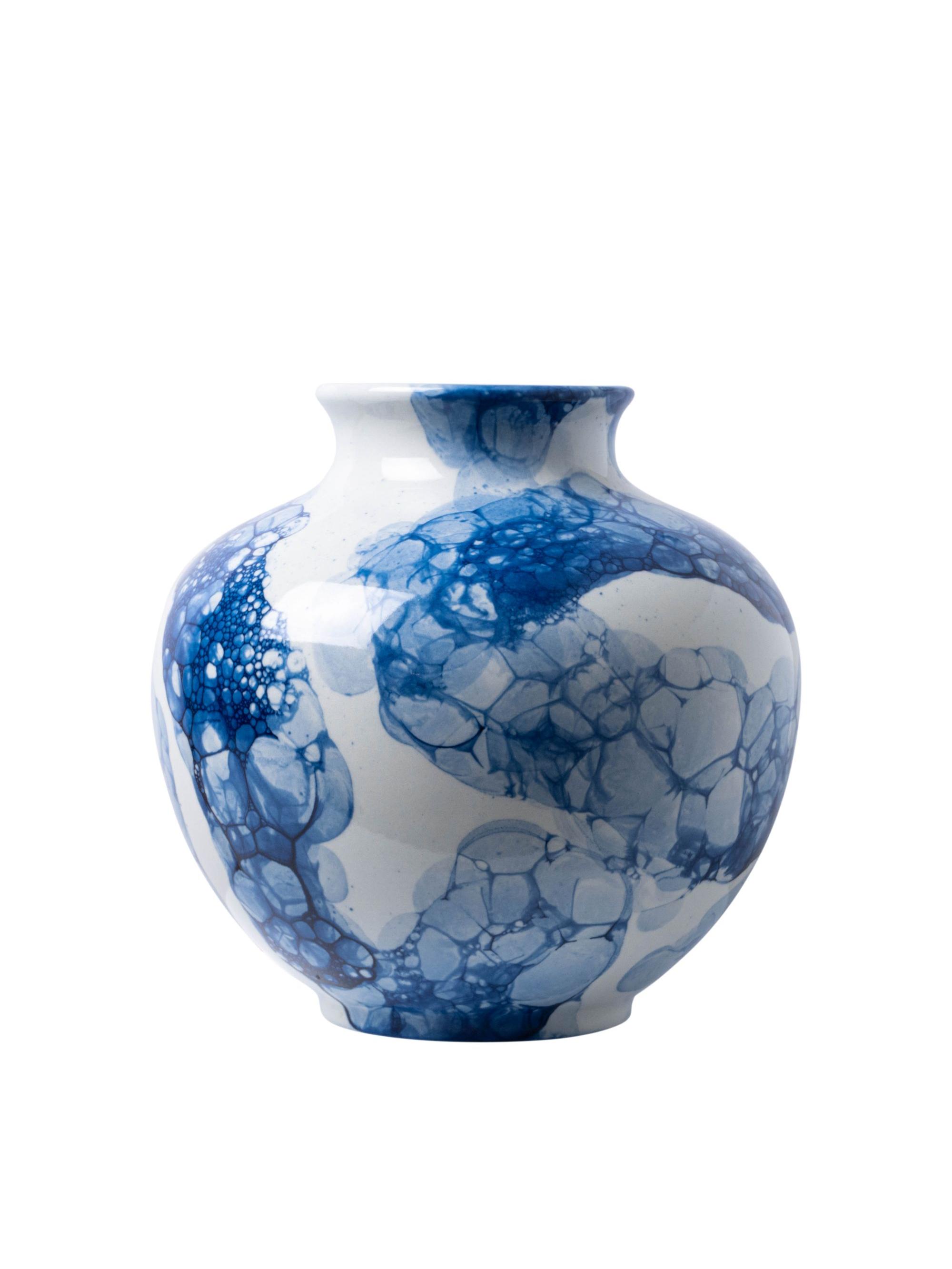 Bolvaas Bubble Blue - Handgeschilderd - 19 cm