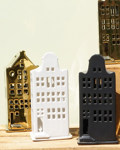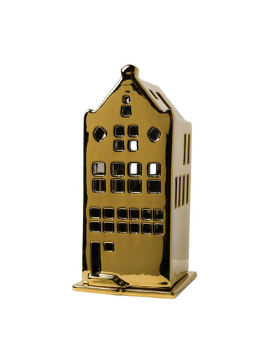 Waxinelichthouder huis - tuitgevel - goud - 17 cm