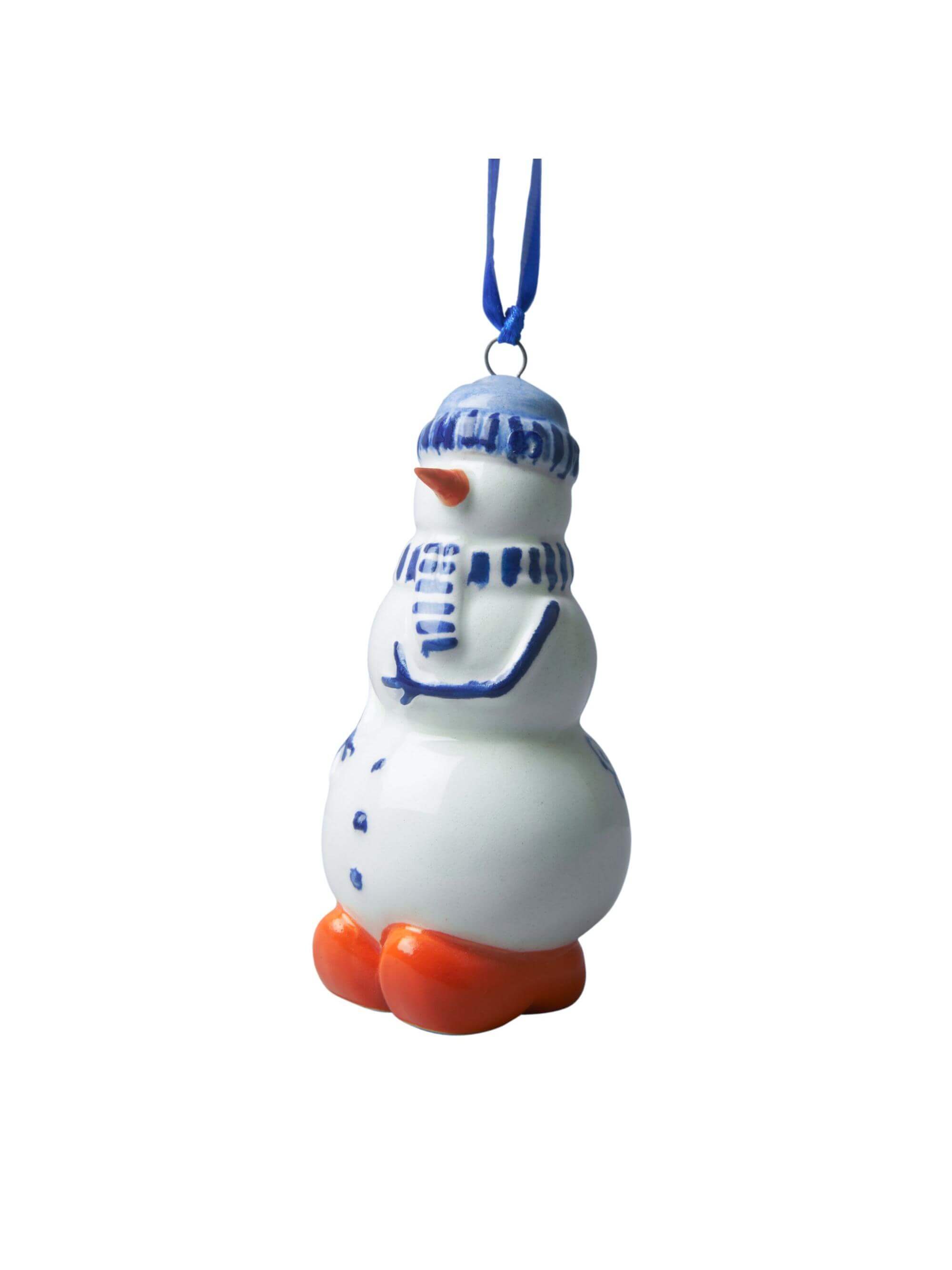 Kerstornament - Sneeuwman - Delfts blauw - Keramiek - 8 cm