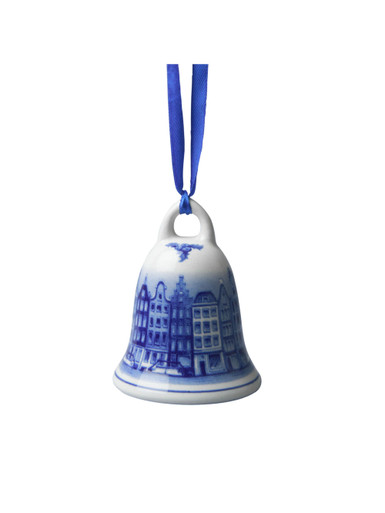 Kerstbel Grachtenpandjes - Delfts blauw - Keramiek - 7 cm