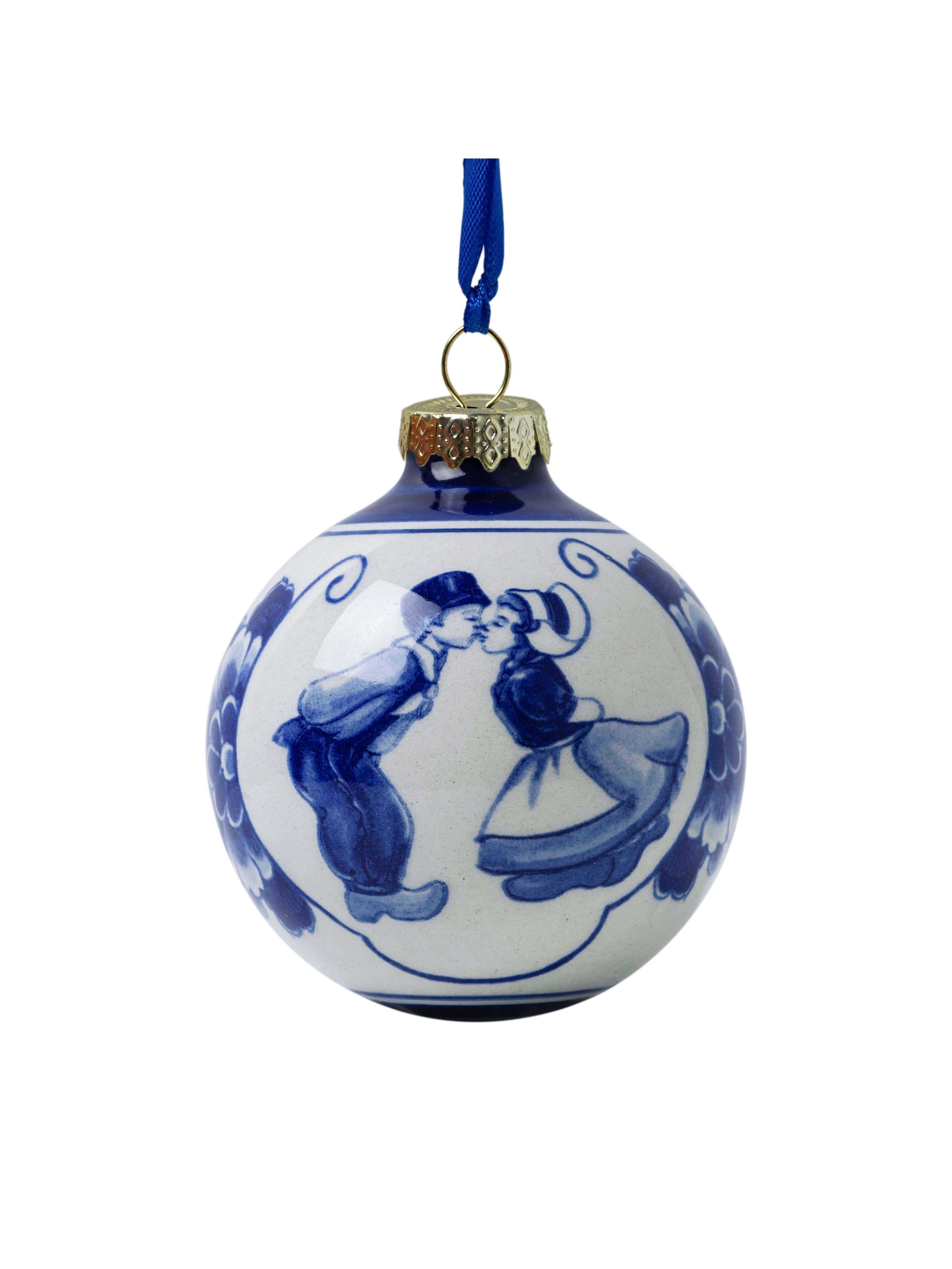 Kerstbal Kuspaar - Delfts blauw - Keramiek - 7 cm