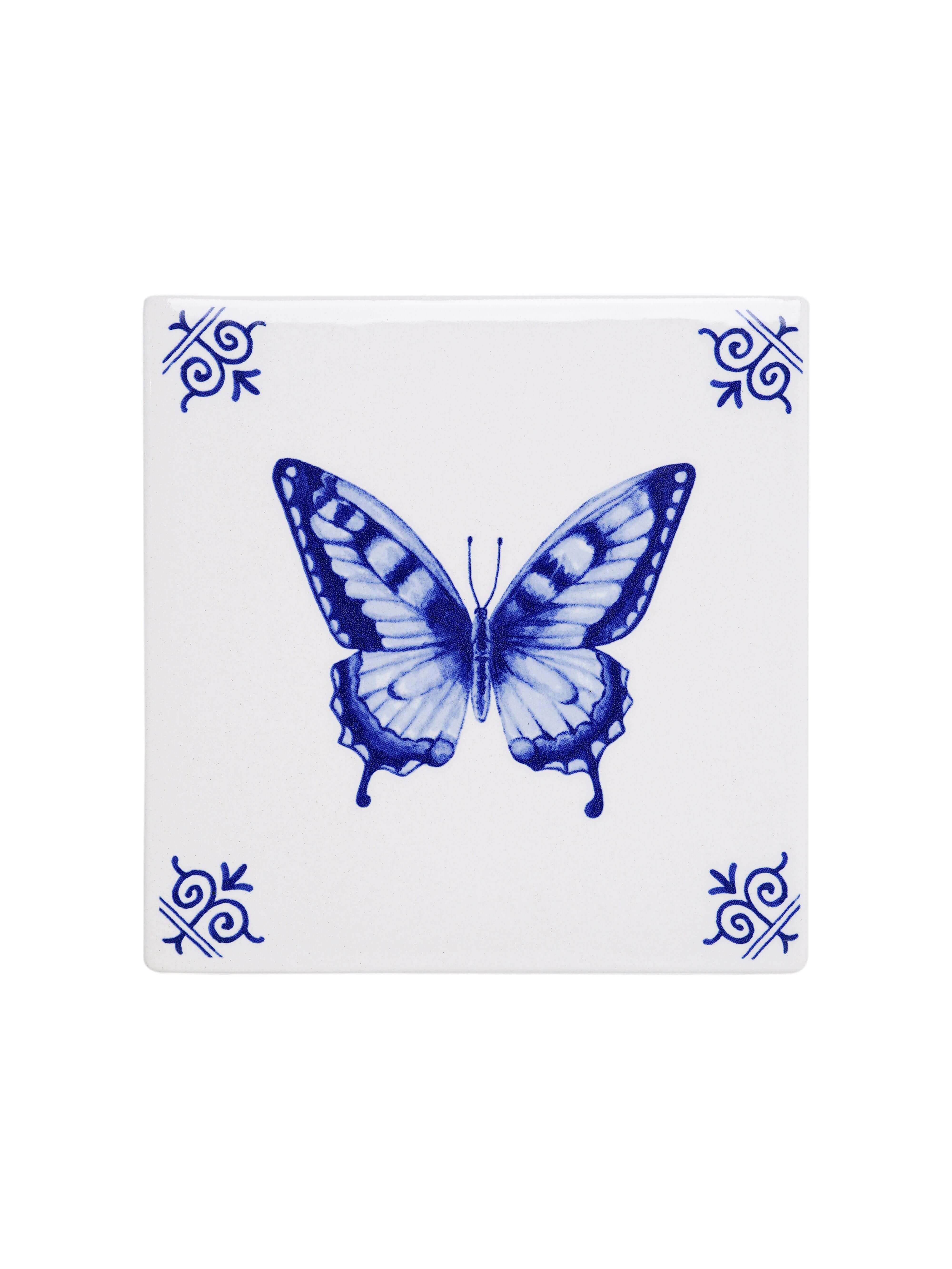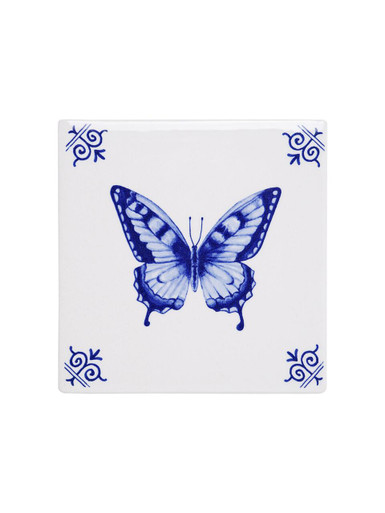 Tegel Vlinder - Delfts blauw - 13 cm