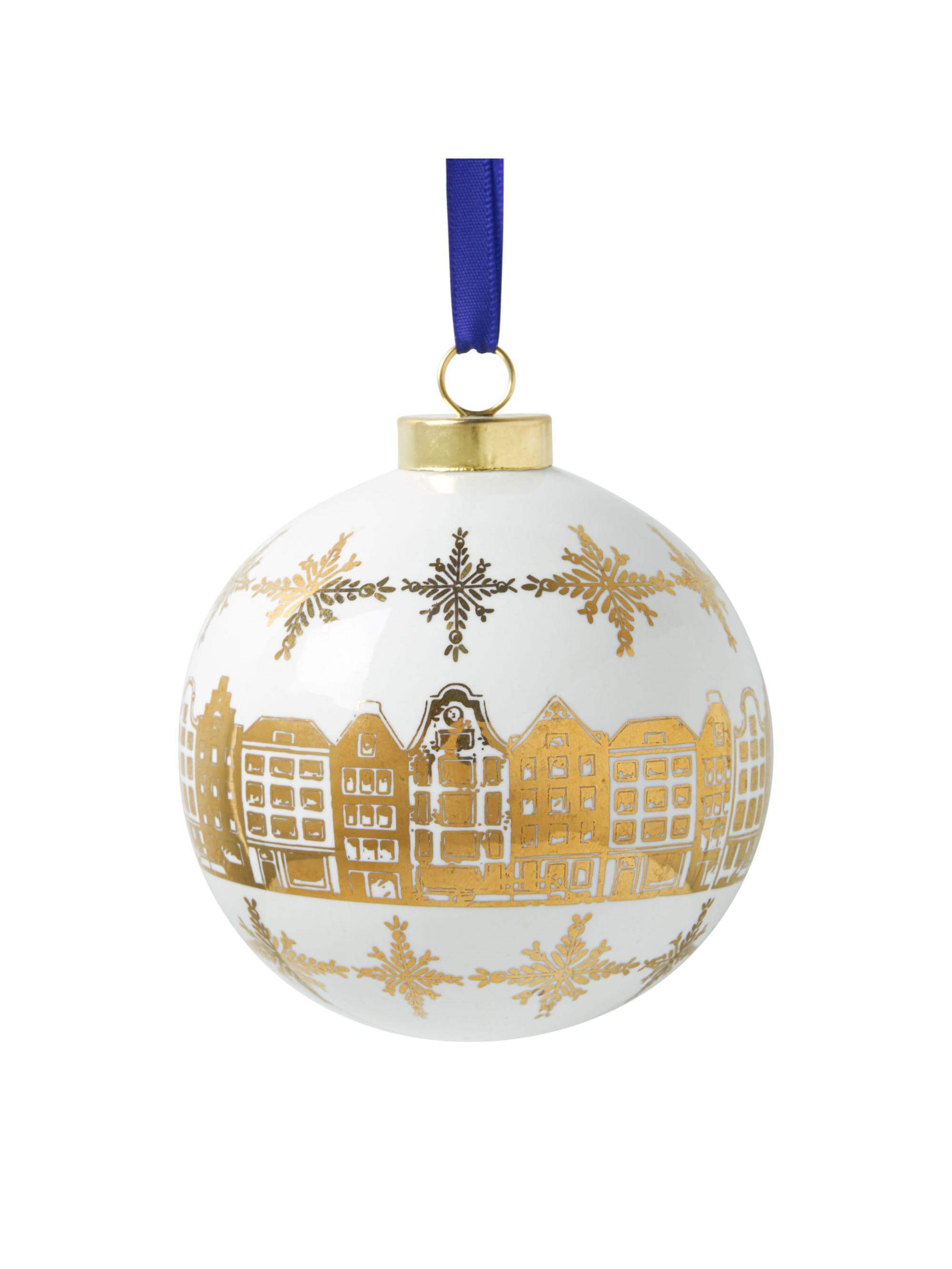 Kerstbal Gouden grachtenpanden Wit