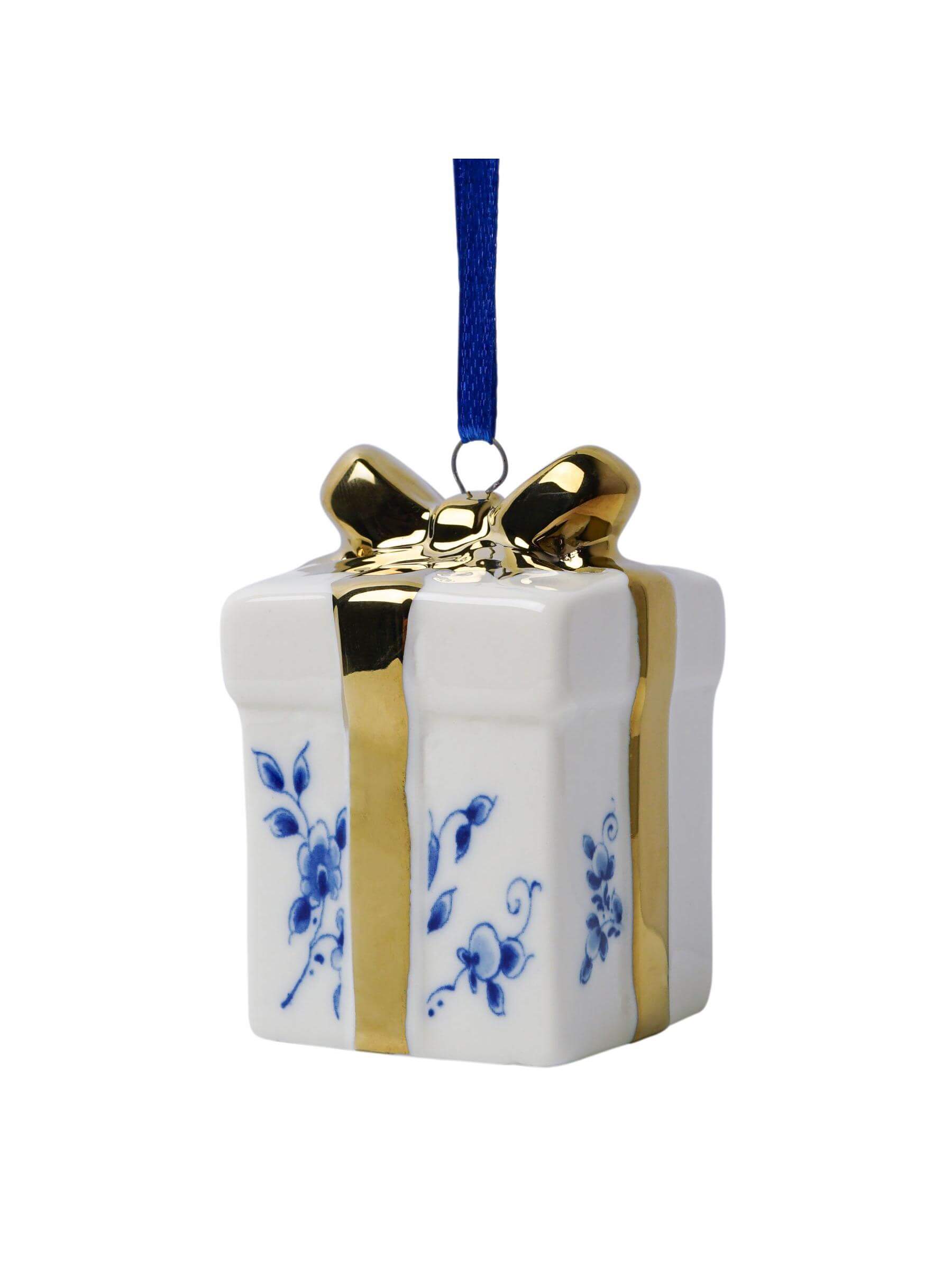 Kerstornament cadeautje goud