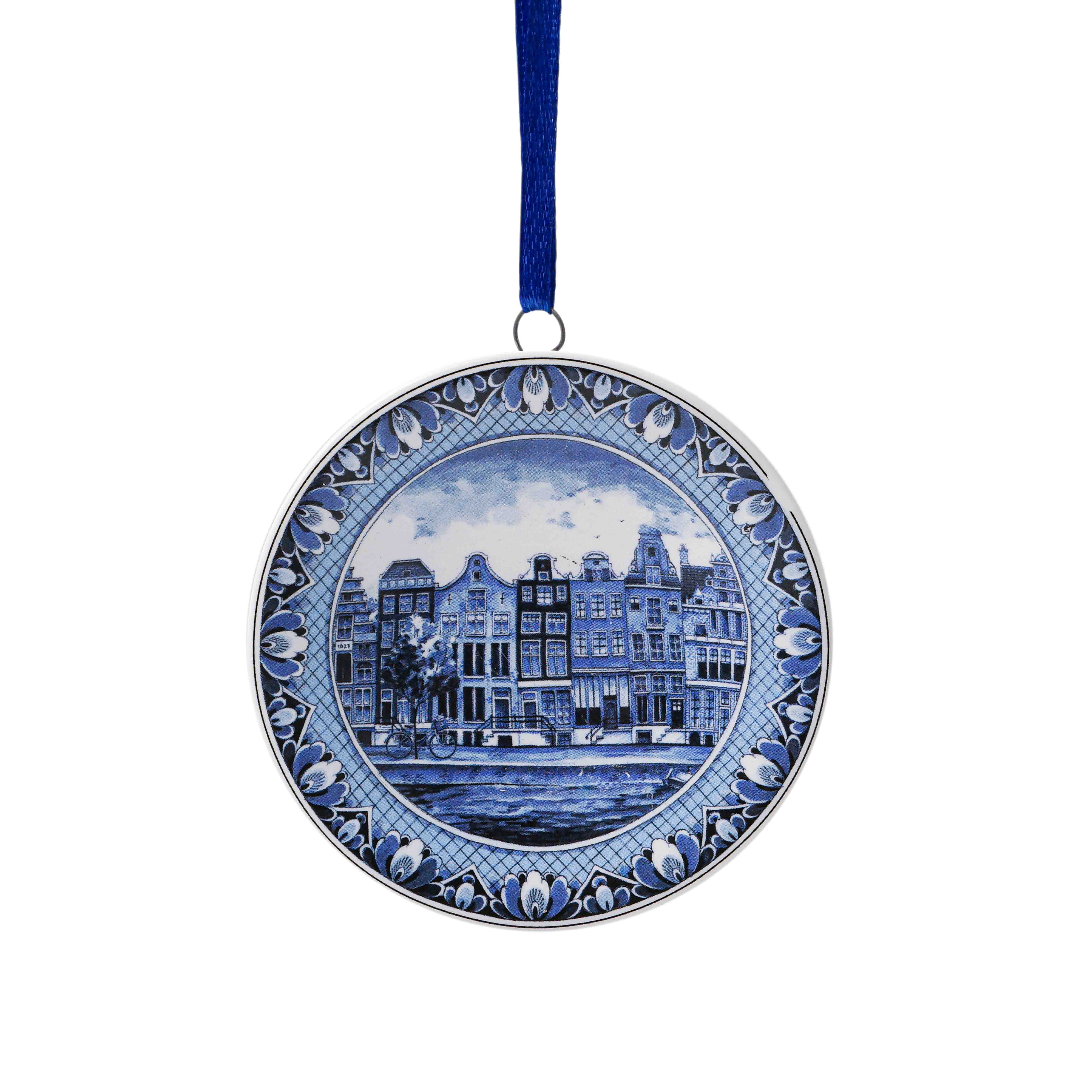 Kerstornament wandbordje - Grachtenpanden - Keramiek - 6 cm