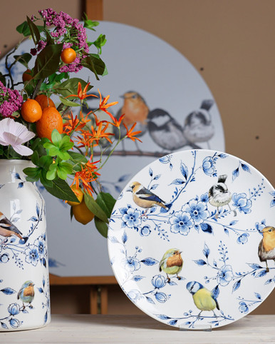 Wandbord Bosvogels met bloesem