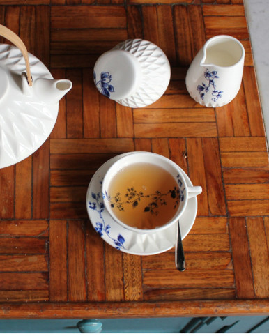 Kop en schotel Blauw Vouw